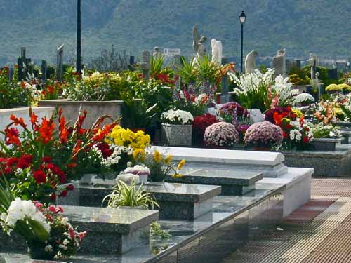NOVEMBERTodos los Santos (All Saints Day) - where relatives visit the graves of their loved ones in the cemetery and decorate the graves with flowers and candles. Rather than being a sad occasion, this day a joyous event and cemetaries throughout Spain are filled with glorious floral displays.